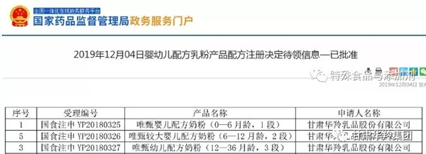 2019年12月4日,國(guó)家藥品監(jiān)督管理局發(fā)布最新一批通過注冊(cè)的嬰幼兒配方乳粉名單: