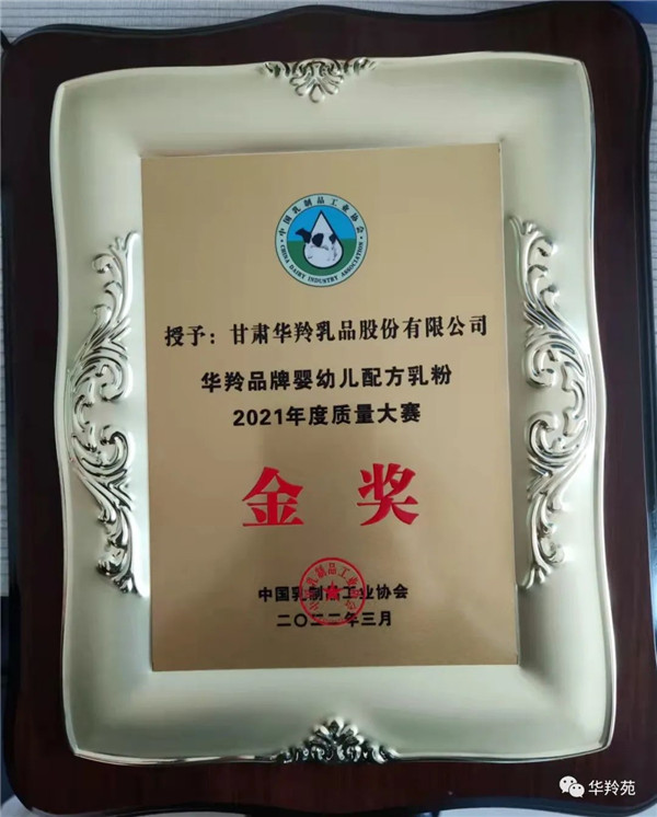 華羚乳品榮獲中國乳制品工業(yè)協(xié)會2021年度乳制品嬰幼兒配方奶粉質量大賽金獎!