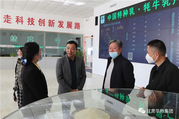 在甘肅華羚實業(yè)集團乳品事業(yè)部總經(jīng)理敏文杰的陪同下,周迅副秘書長一行先后參觀了華羚乳品集團榮譽大廳、產(chǎn)品展示廳、牦牛乳透明生產(chǎn)車間、中國特種乳•牦牛乳產(chǎn)品交易中心。敏文杰總經(jīng)理向調(diào)研組一行詳細匯報了華羚乳品集團在產(chǎn)業(yè)帶動、科技創(chuàng)新、牦牛乳精深加工、鞏固脫貧攻堅成果與鄉(xiāng)村振興戰(zhàn)略有限銜接等方面發(fā)揮的龍頭企業(yè)帶動作用。周迅副秘書長對華羚乳品集團深耕牦牛乳產(chǎn)業(yè)所作出的工作給予了充分肯定和高度評價。